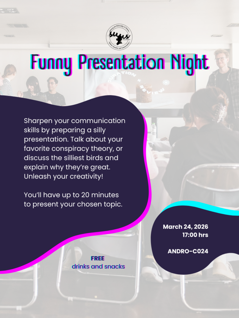• Funny Presentation Night March 24, 2026  5:00 pm - 9:00 pm ANDRO C024