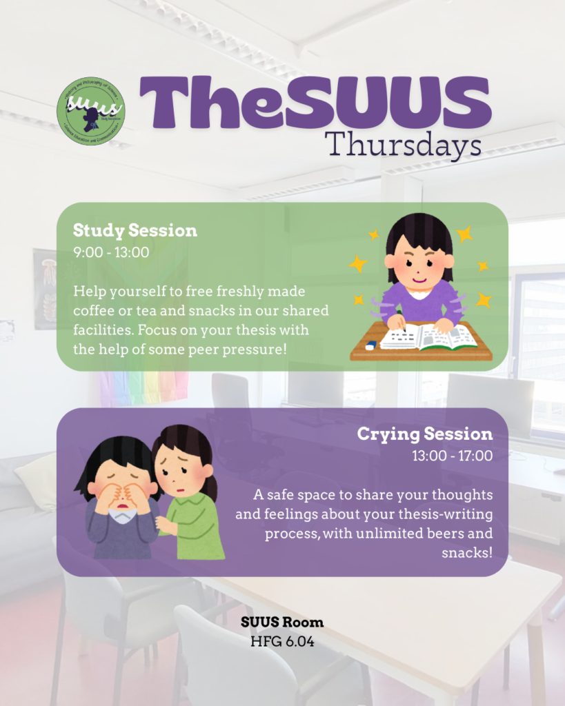 • TheSUUS Thursday May 14, 2026  9:00 am - 5:00 pm Suus Room (HFG 6.04)