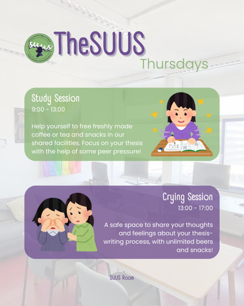 This initiative arose from requests by thesis students for a safe and pleasant space where they could work on their theses and relax. It also gives first-year students the chance to learn about available projects and supervisors. You’re also welcome to come work on other assignments and get advice on courses and professors from older students.